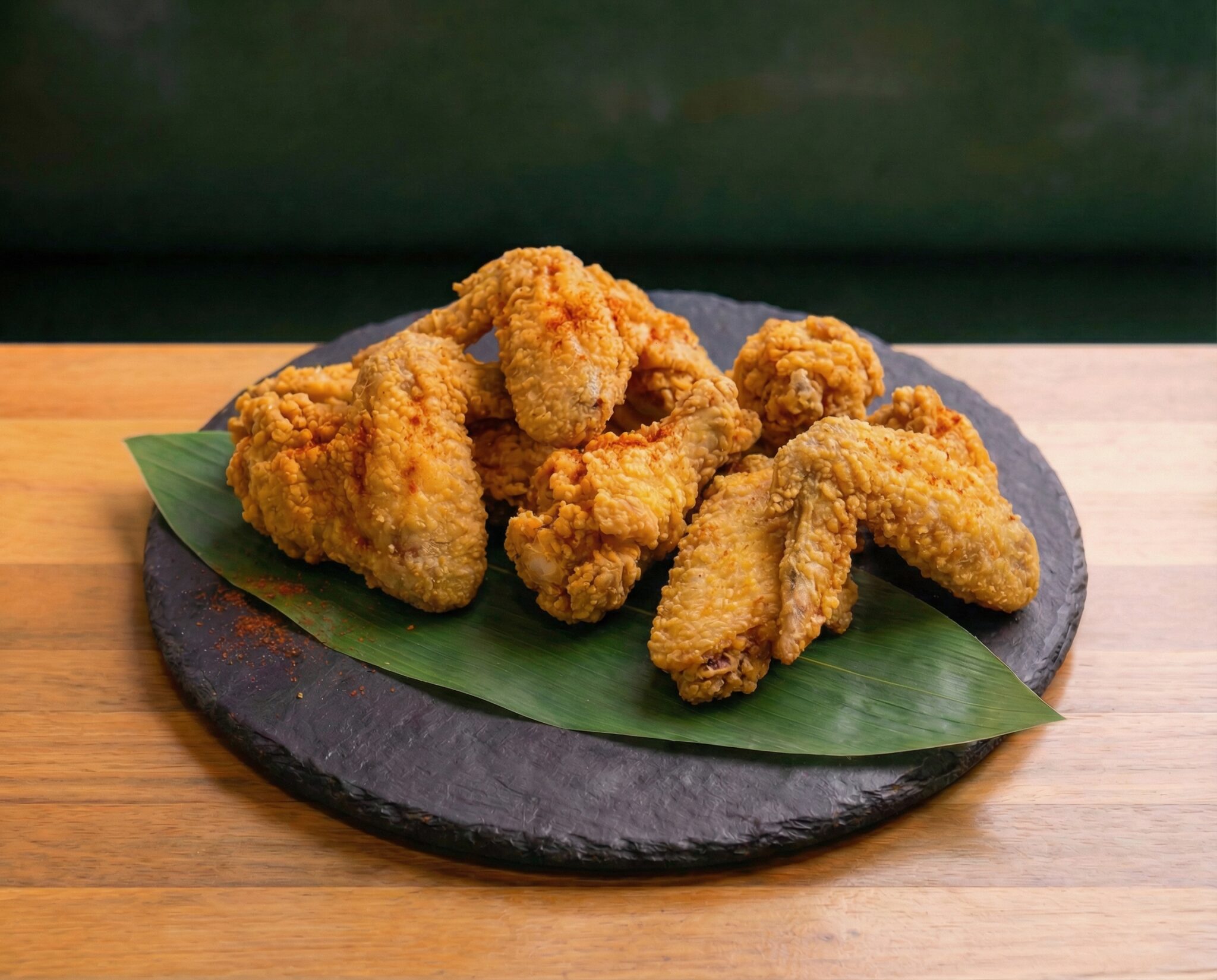 aripioare de pui 352g, breading făină crispy 112g (alergen: gluten – A), marinată crispy hot 2g, peperoncino 1g. Aditivi: E-621. Alergeni: gluten – A. Declarație nutrițională per 100g: energie 245 kcal / 1025 kJ, grăsimi 12.0 g din care acizi grași saturați 2.3 g, carbohidrați 15.2 g din care zaharuri 0.6 g, proteine 20.5 g, sare 1.8 g. / 450g